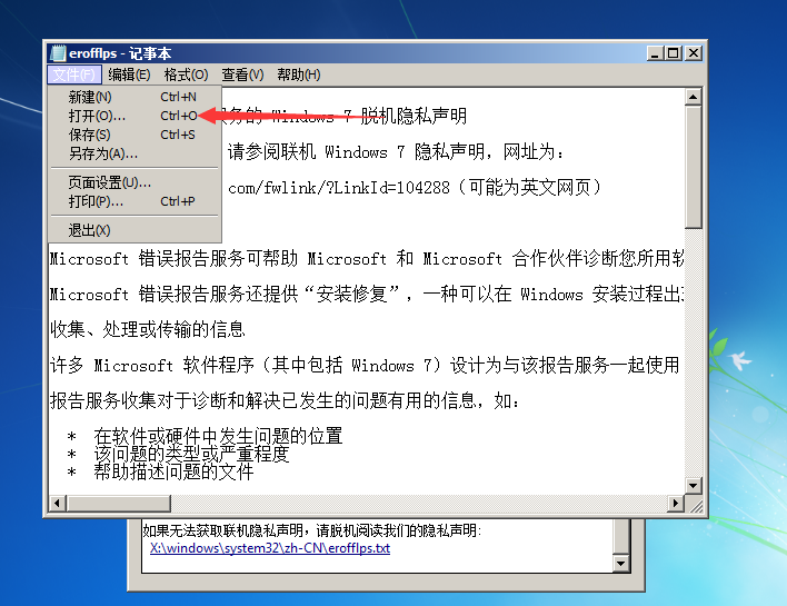 记事本里的废话我们当然不关心,咱们点文件>打开