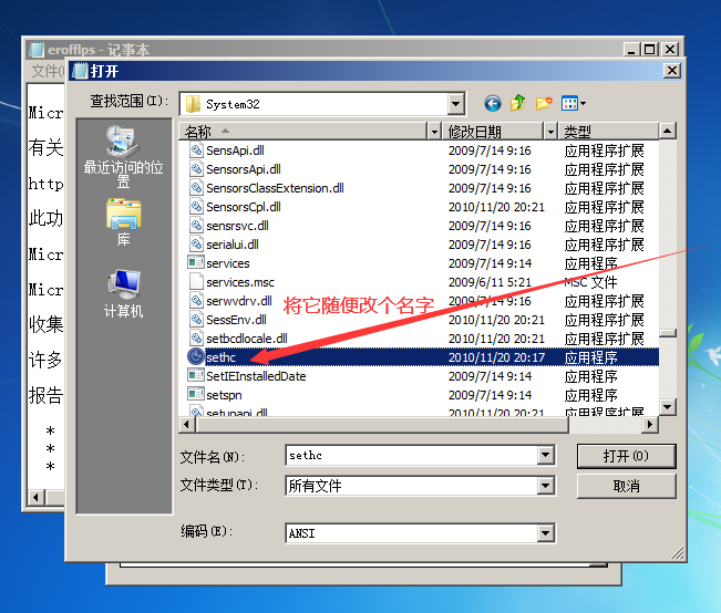 找到sethc,这就是粘滞键的程序,我们为了让cmd顶替它,需要先把sethc的名字改掉,改什么看自己心情。(我改成了个abc哈)