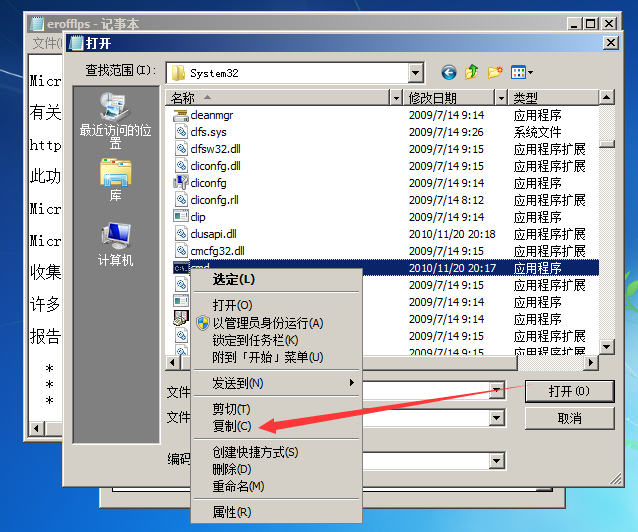 出现一个cmd-副本,对准副本文件,右键,重命名,改为sethc(不要改错名字哈,改错就要重新再来了哦)