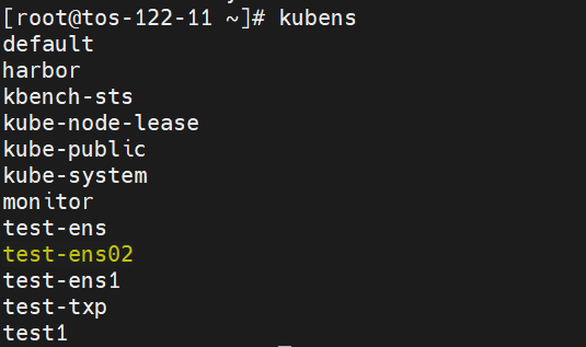 这里标黄的就是当前所在的namespace,可以通过kubens namespace名称来切换所在ns