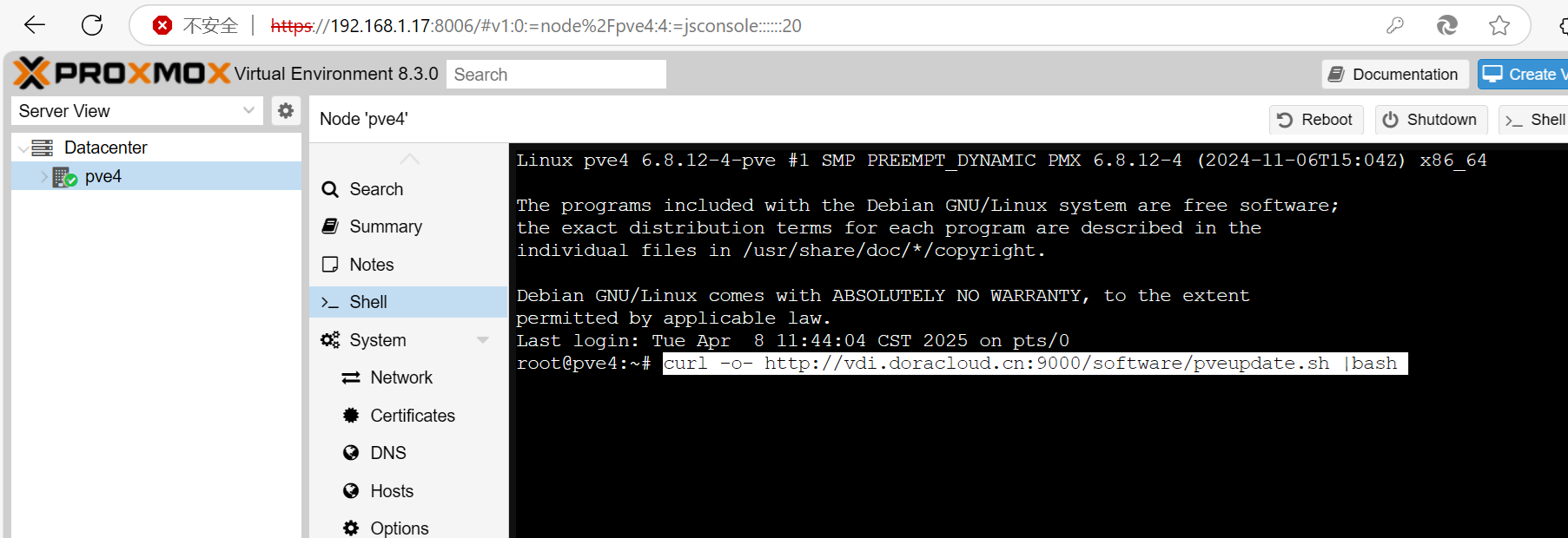 curl -o- http://vdi.doracloud.cn:9000/software/pveupdate.sh |bash