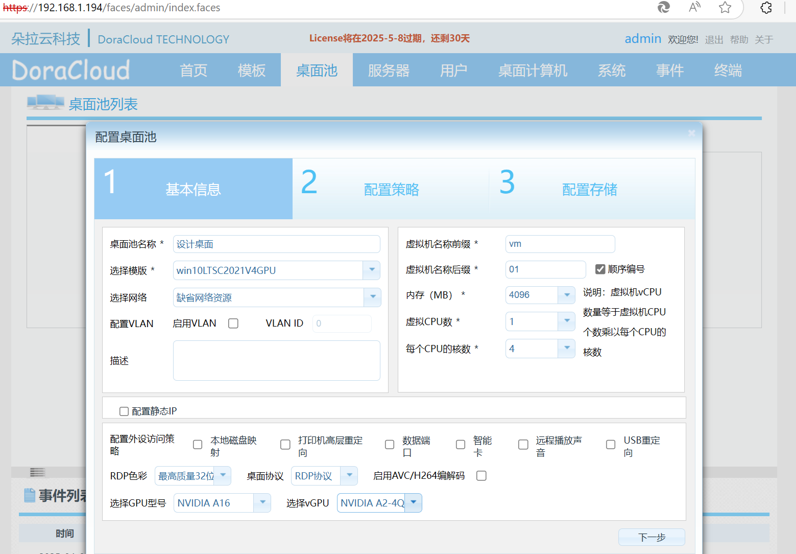 2.5 下载模板、配置桌面池,并且用vGPU