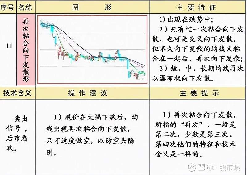 技术含义:均线粘合后向下发散,具有较强的助跌作用,为卖出信号。