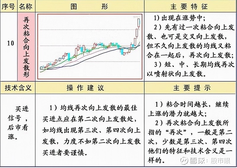 技术含义:从技术上说,均线粘合后向上发散具有较强的助涨作用,为买进信号。