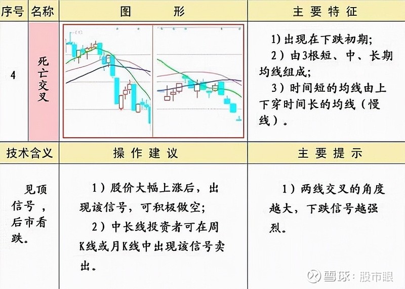 特征:一根时间短的均线由上而下穿过一根时间长的均线,且这根时间长的均线正在向下移动。