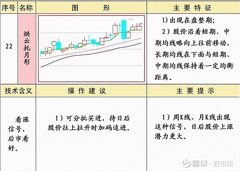 技术含义:技术上,均线出现烘云托月形,表明多方蓄势待发,为买进信号。