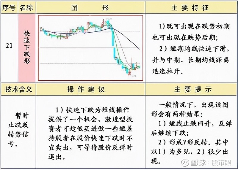 特征:短期均线(日K线图中,主要指5日移动平均线)起先处于缓慢下降状态,后来突然间开始加速,且下跌速度越来越快。