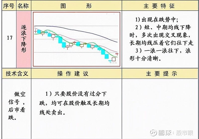 技术含义:均线出现逐浪下降形,表明股价整体呈下降趋势,并且按退二进一的方式向下滑行。多方只有招架之力(小有反弹),没有还手之力,空方始终占据着主动低位。