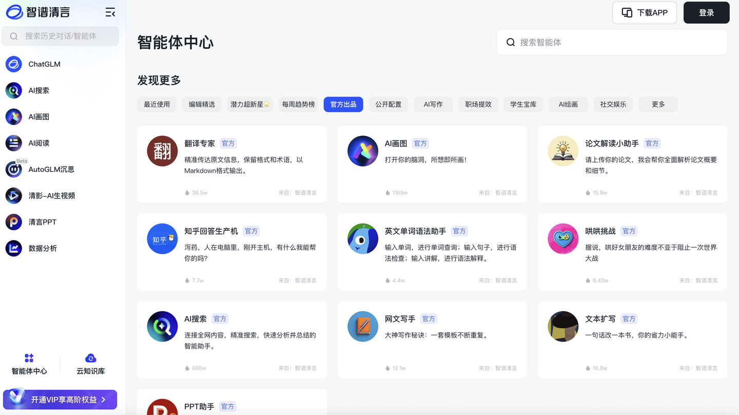 一句话介绍:基于智谱大模型的语言智能体,专注中文知识问答、文本生成与推理。