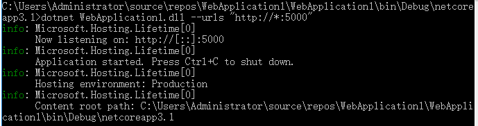 .ConfigureWebHostDefaults(webBuilder => { webBuilder.UseStartup<Startup>(); webBuilder.UseUrls("http://*:3000"); });