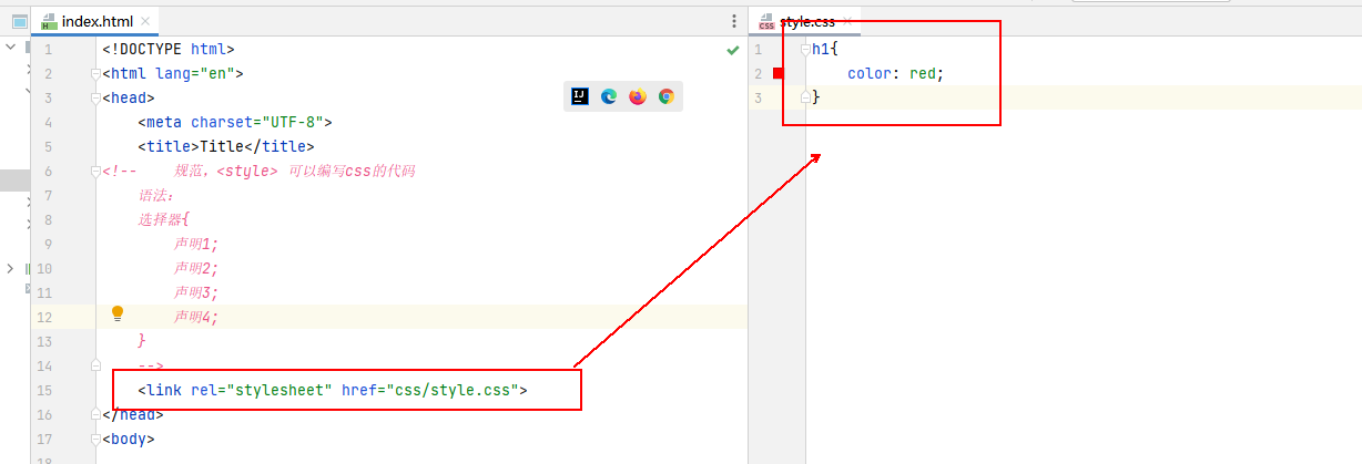 <style> .qin{color:red} </style> <h1 class="qin">内容一</h1>