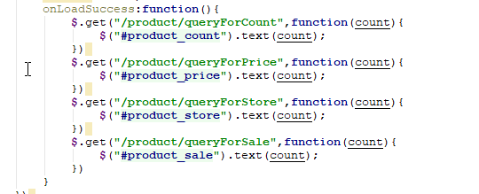 (2)在datagrid表格中添加数据加载成功后的触发事件,触发之后发送四条ajax请求,查询相关数据,然后设置到文本中