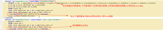 解决:在queryforlist的sql中,加上include拼接上,同时,将返回类型由resultType改为resultMap,解决方案如图所示: