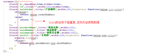 1,在使用 easyui的DataGrid的columns 属性中field 时,使用的元素名称重复,导致显示页面只能获取到第一个元素的数据,而其他的页面则无法显示出来,