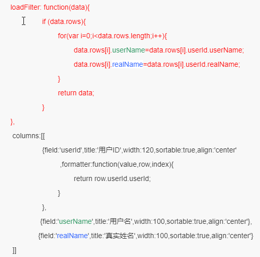 如果不改变后台,就需要对返回后的数据data进行修改,如下所示(红色字体部分):