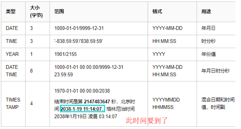 # year # date now(),20191010 '2019-01-01' # time now(),121212 '12:12:12' # datetime now(),20191010121212,'2019-01-01 12:12:12' # 可自动给你分隔,但是必须有时分秒 # timestamp # create table time1(y year,d date,t time); # create table time2(dt datetime,ts timestamp); # datetime 能表示的时间范围大 可以为空,没有默认值 # timestamp 能表示的时间范围小 不能为空,默认值是当前时间 # create table time2(dt datetime default current_timestamp,ts timestamp); # 人为设置datetime类型的默认值是当前时间