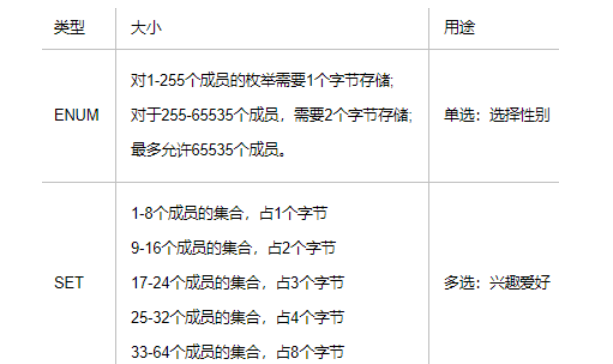 - SET和ENUM非常相似,也是一个字符串对象,里面可以包含0-64个成员。根据成员的不同,存储上也有所不同。set类型可以允许值集合中任意选择1或多个元素进行组合。对超出范围的内容将不允许注入,而对重复的值将进行自动去重。