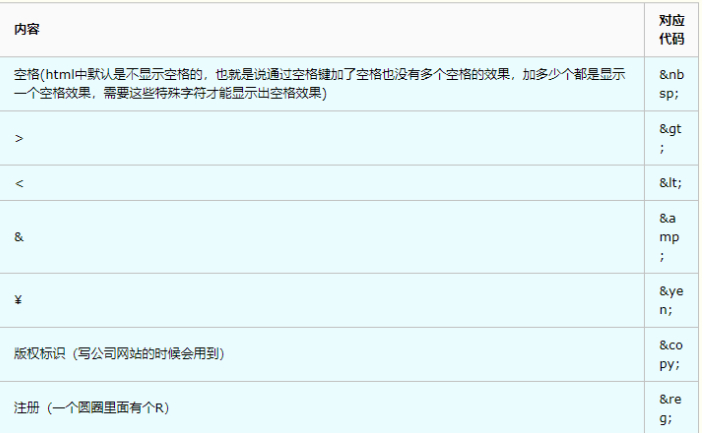 特殊字符( 还有好多其他的,可以直接百度搜HTML特殊符号对照表)