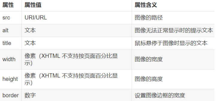 <img src="图片的路径" alt="图片未加载成功时的提示" title="鼠标悬浮时提示信息" width="宽" height="高(宽高两个属性只用一个会自动等比缩放)"> src的路径又分为两种:网上的一个图片路径和本地的一个相对图片路径