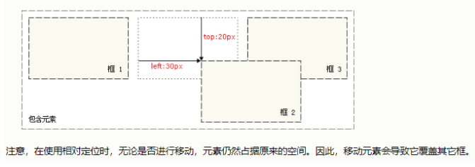 设置为相对定位的元素框会偏移某个距离。元素仍然保持其未定位前的形状,它原本所占的空间仍保留。