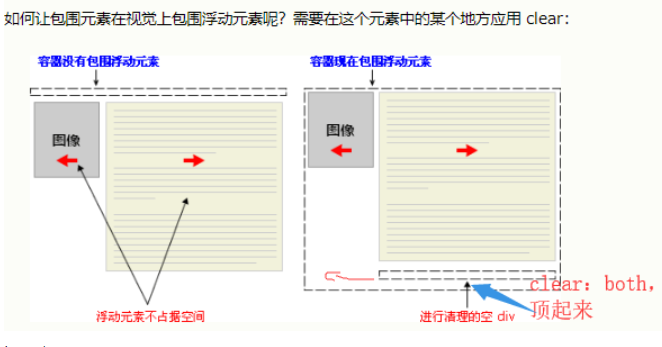 - 为了实现这种效果,在被清理的元素的上外边距上添加足够的空间,使元素的顶边缘垂直下降到浮动框下面: