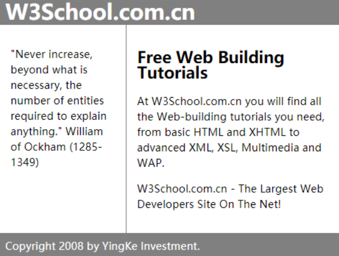 <div class="footer">Copyright 2008 by YingKe Investment.</div>