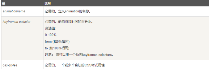 @keyframs:定义一个动画,@keyframe定义的动画名称用来被animation-name所使用。
