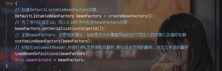 1)在上一章解释了整体创建过程,其中在创建BeanFactory完成,会调用loadBeanDefinitions()