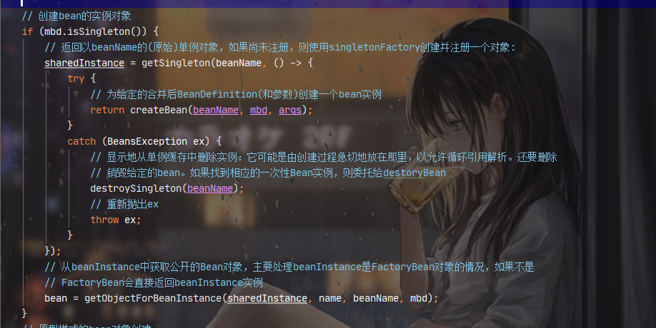 否则 判断是否单例模式:优先从缓存中获取getSingleton(),