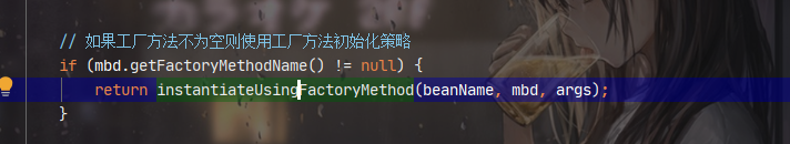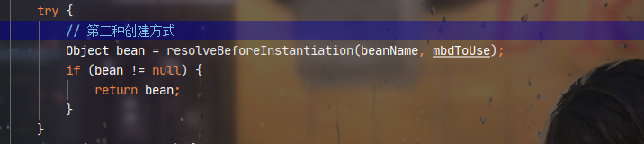 在CreateBean中,第一步判断是否是InstantiationAwareBeanPostProcessor的子接口,如果是调用postProcessBeforeInstantiation()方法进行对象的创建,这是第二种创建方式