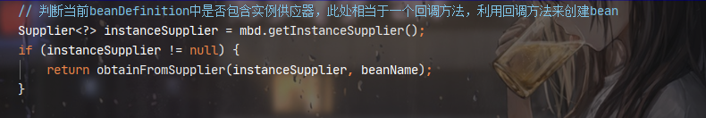 如果当前BeanDefinition在BeanFactoryPostProcessor过程中被修饰成lambda表达的创建方式,则第三种创建方式