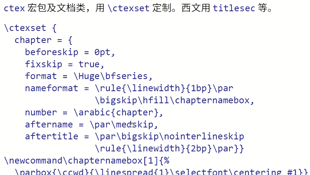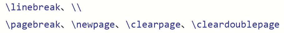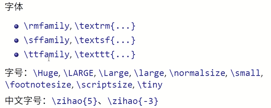- 大型文档:\frontmatter; \mainmatter; \backmatter