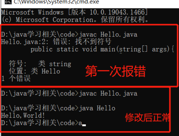 - 每个单词的大小不能出现问题,java是大小写敏感的