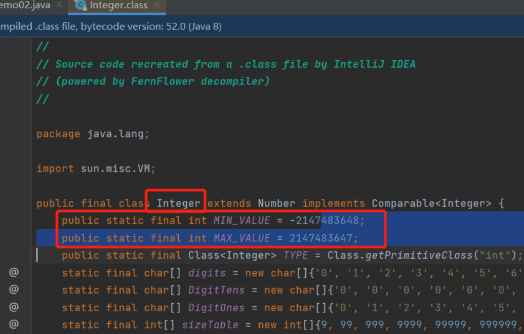 可以查看某个数据类型的范围,例如输入Integer,Ctrl+左键单击跳转此页面