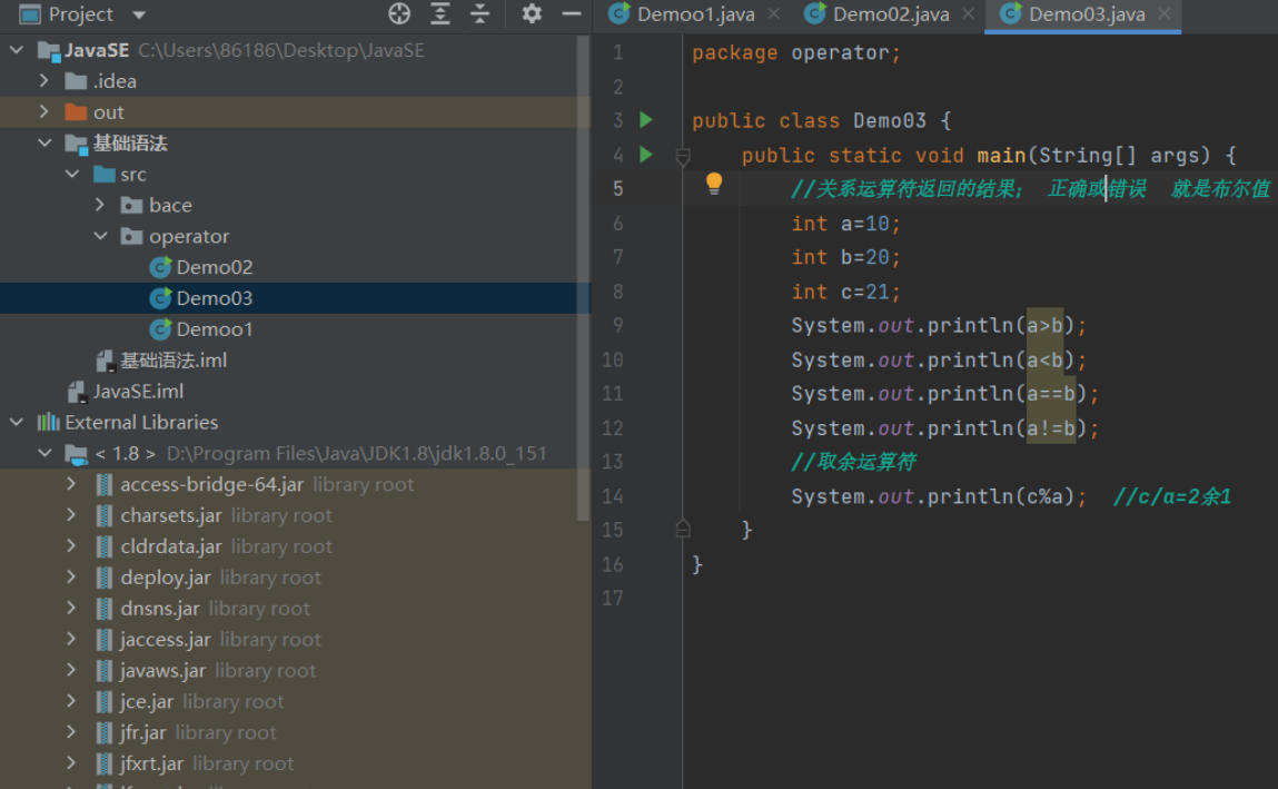 “%”是余数,Java叫模。