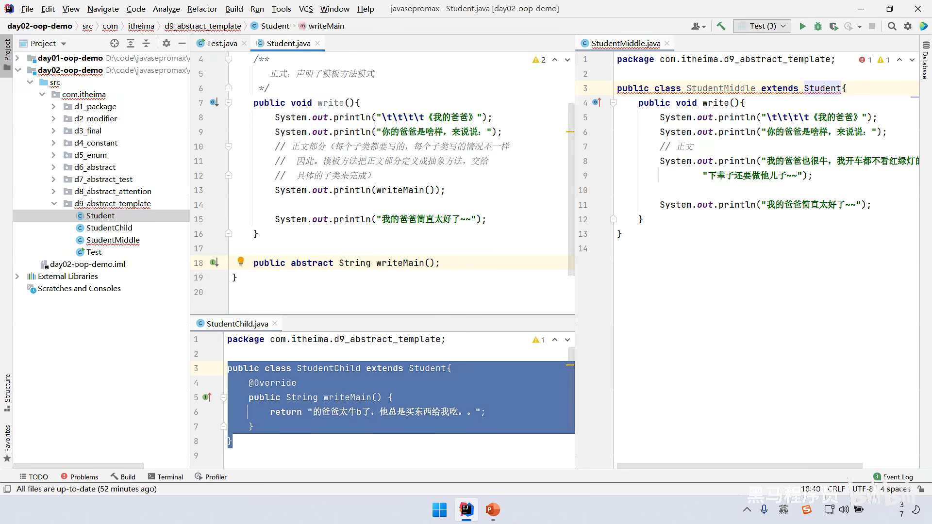 模板方法:可以减少代码的重复。写了一个模板方法后其他方法可以继承,不用重复写里面的代码。