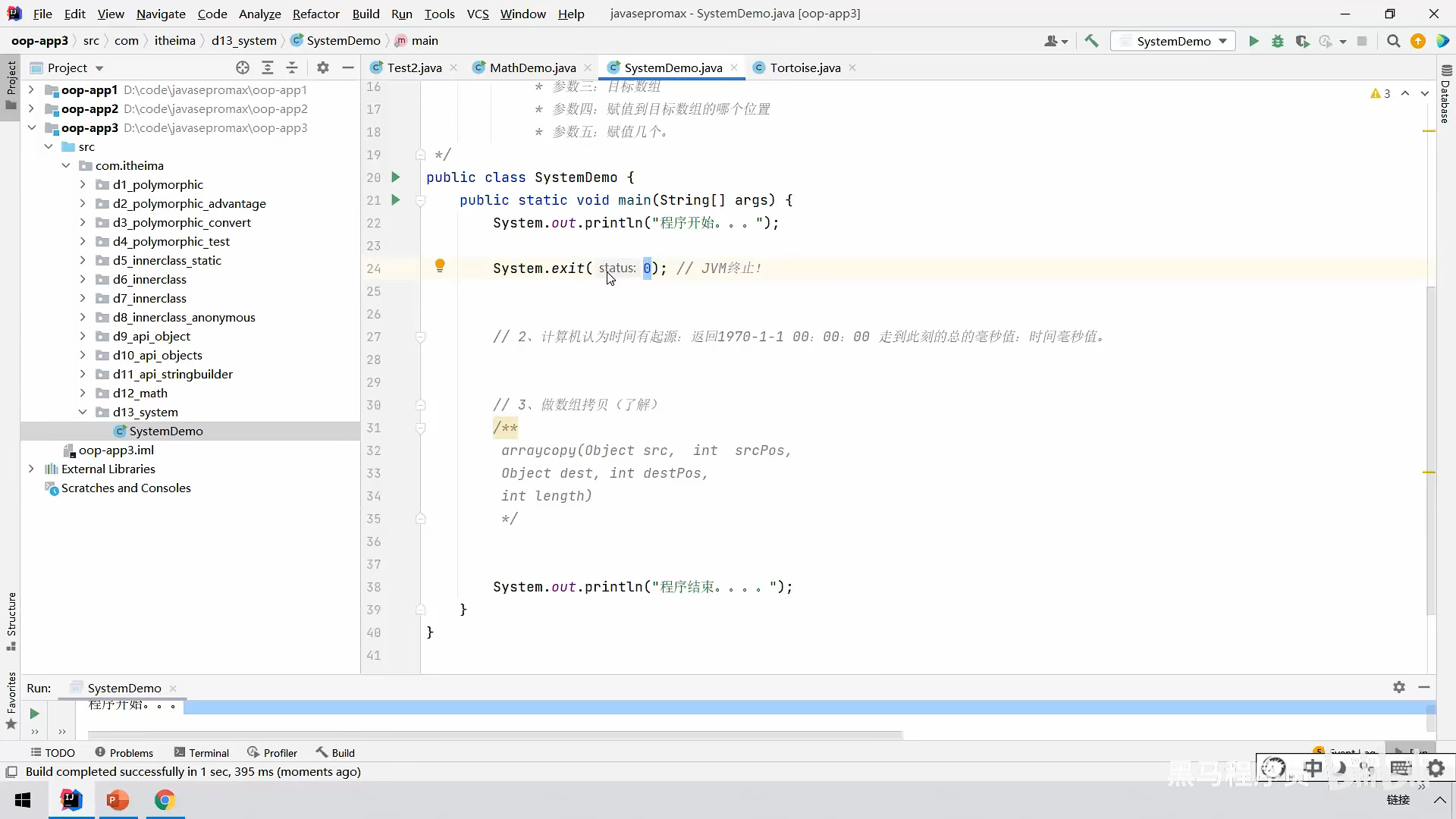 exit()方法实现:System.exit执行后,后面的代码都不会被运行了。比如这里后面那个输出打印语句就不会被运行。