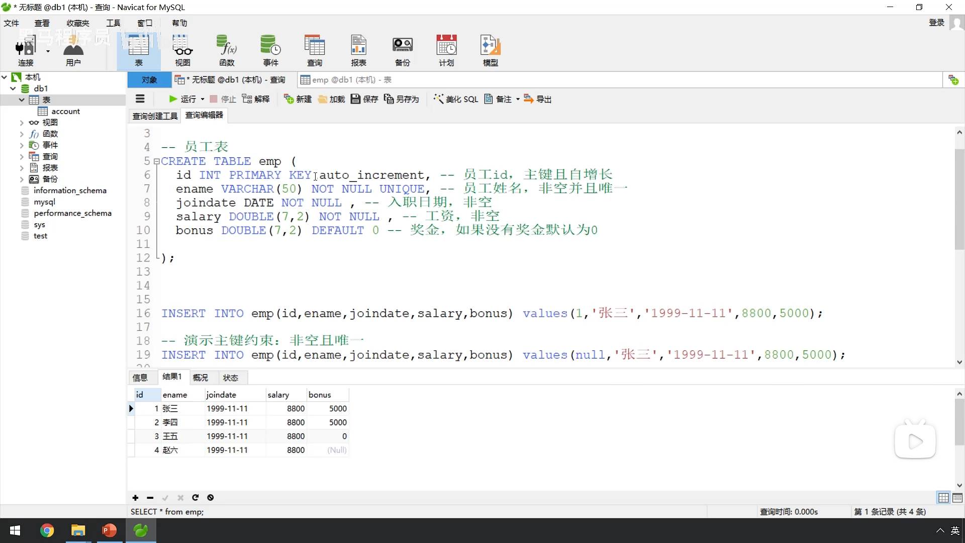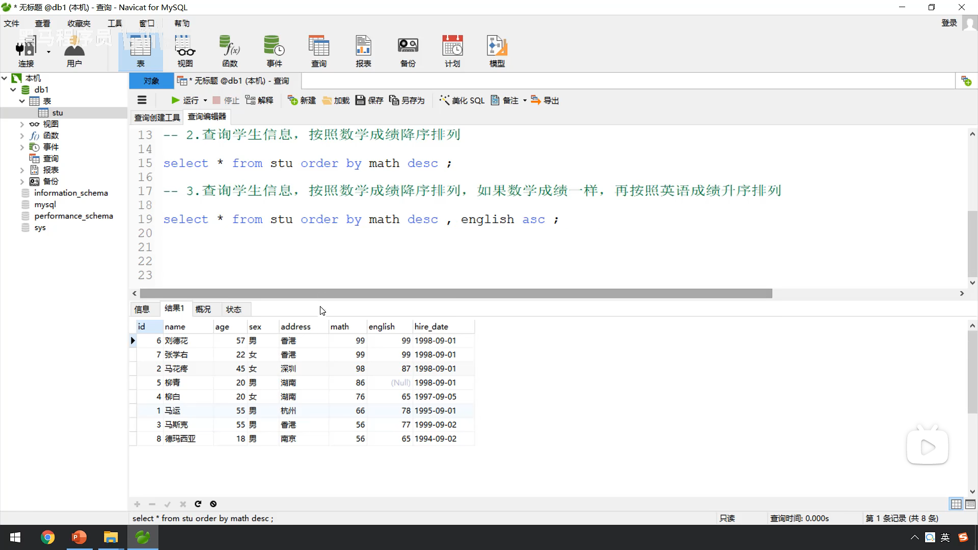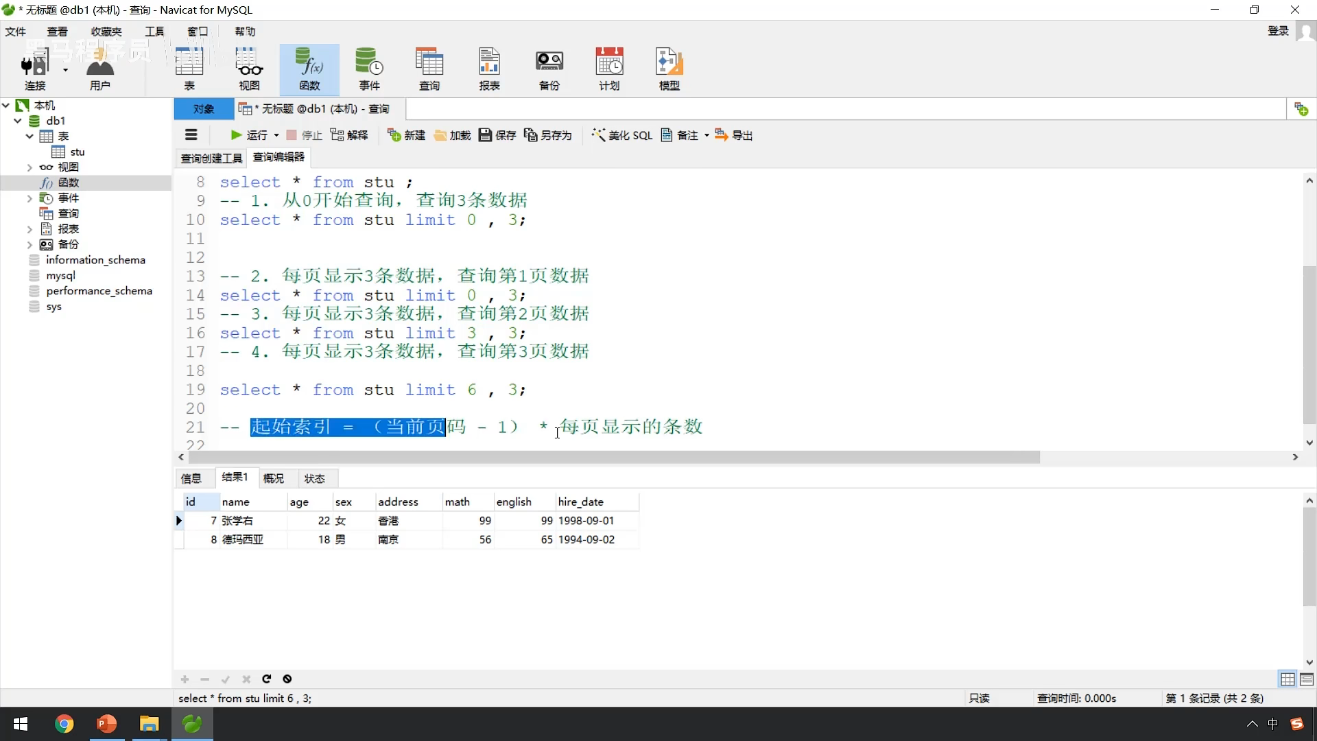聚合函数:(null不参与聚合函数的运算,比如count,就不会统计数值为null的那一行。再比如max,也不会把null算进去)