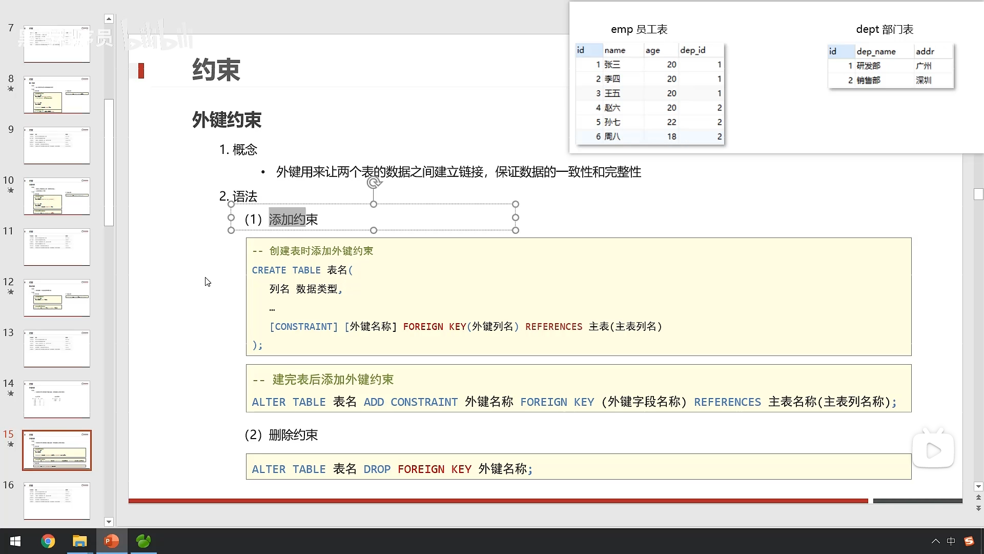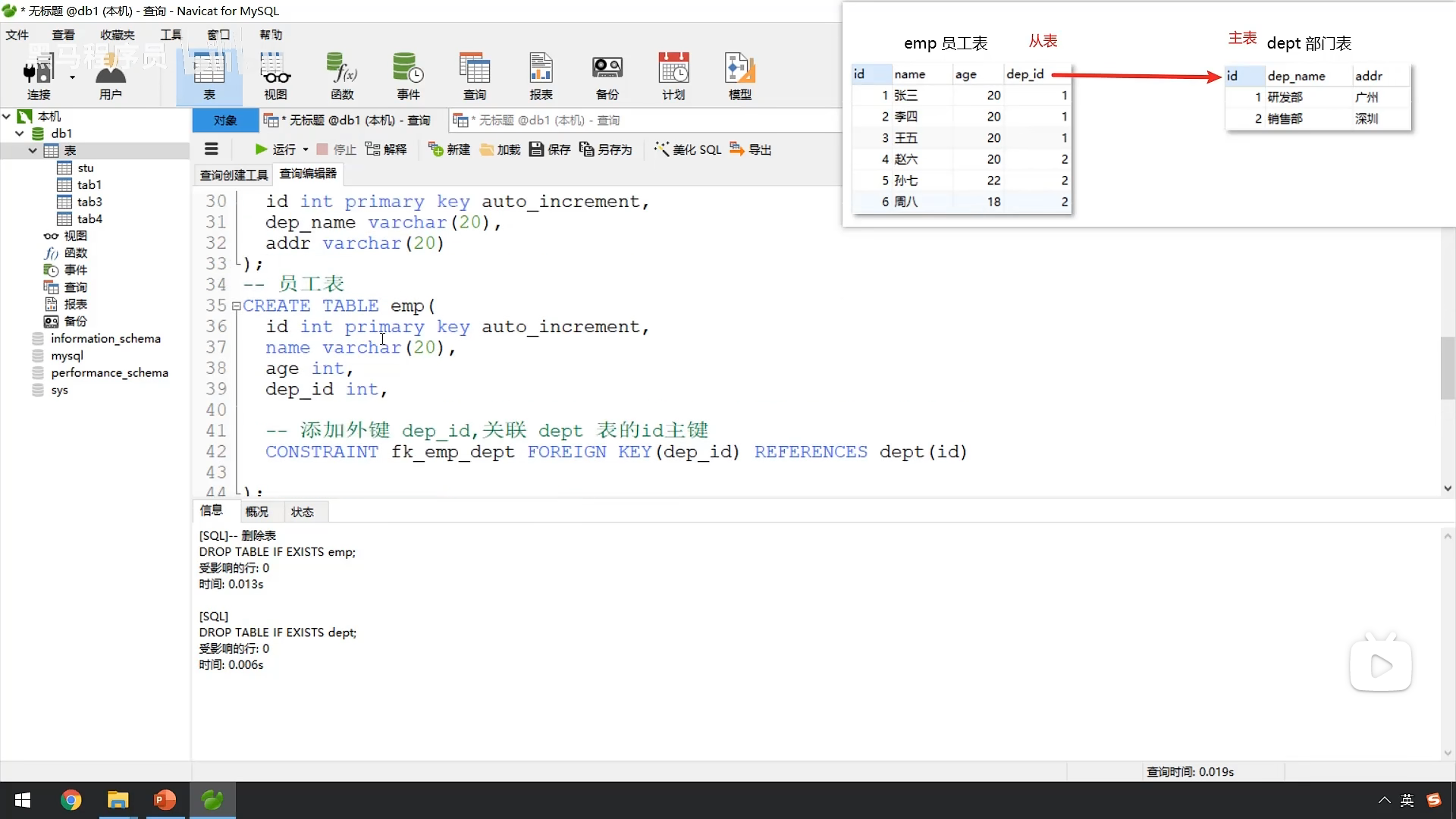 要先创建主表,再创建从表,在从表里添加外键,关联2张表。