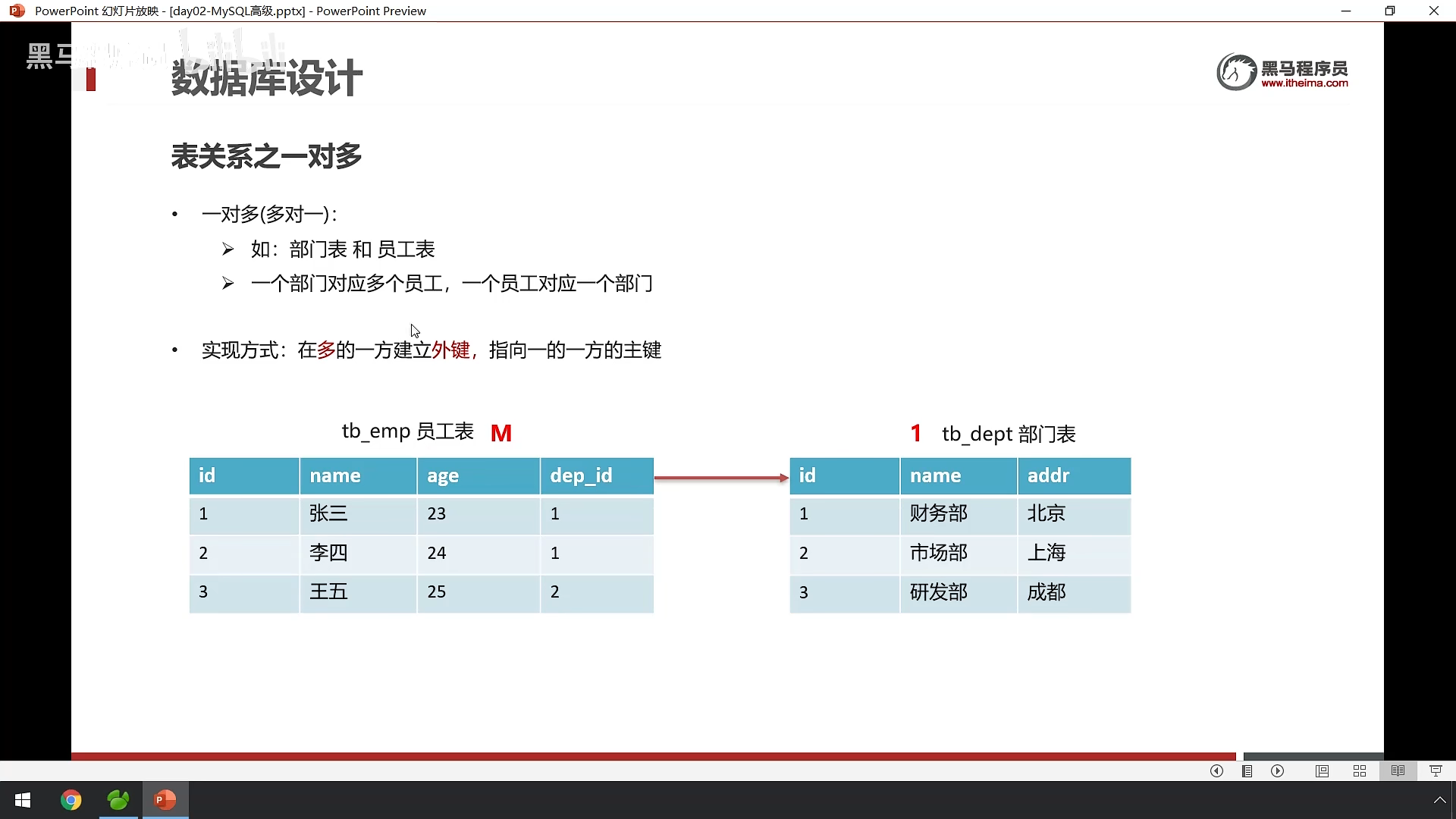 一对多: