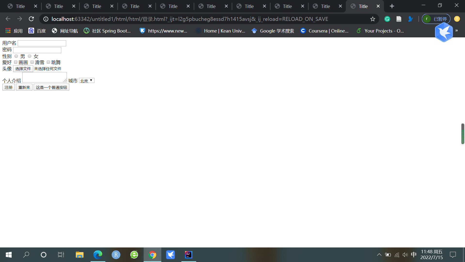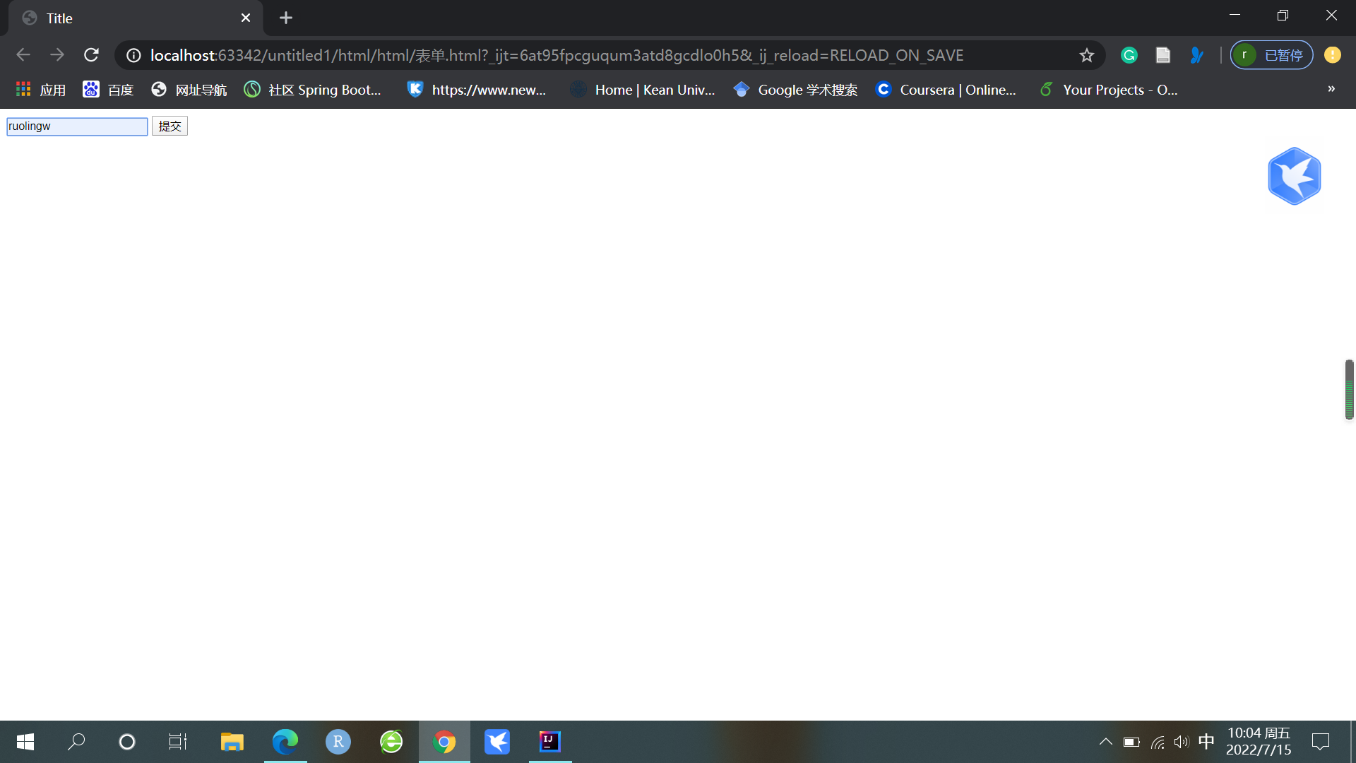 效果:action是百度的搜索url,下面input里的name和搜索url里的那个一样就可以得到在百度里搜索的效果。