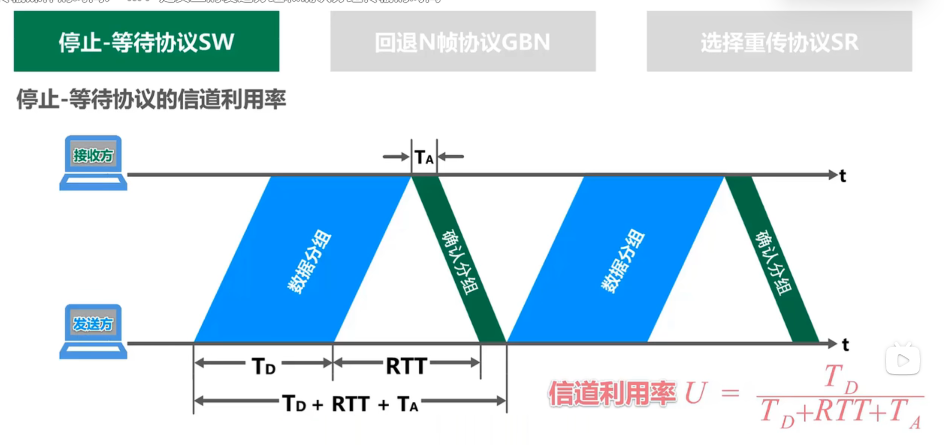 发送方给接收方发送一个数据,在收到接收方的ACK或NAK之后才继续发送下一个数据。这样有个问题,就是当网络延迟的时候,效率很低。