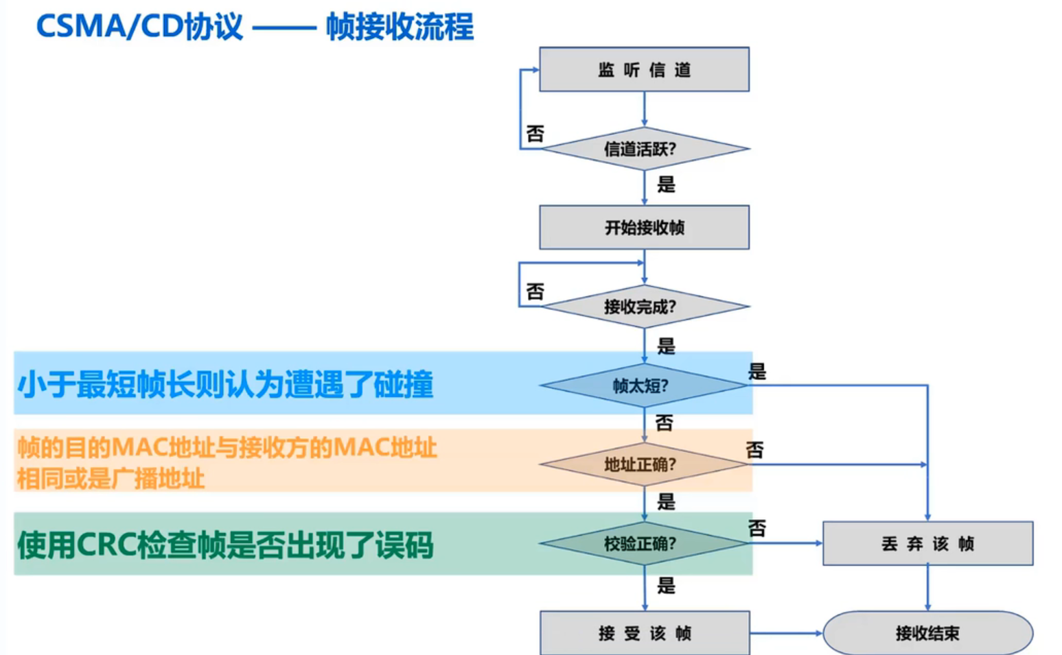 如果帧长很小,那么A发送完的帧在线路中遇到碰撞,A不会知道,导致A不会重发。如果足够长,就知道发生了碰撞。帧也不可以太长,不然会占用,导致其他的不能发送。
