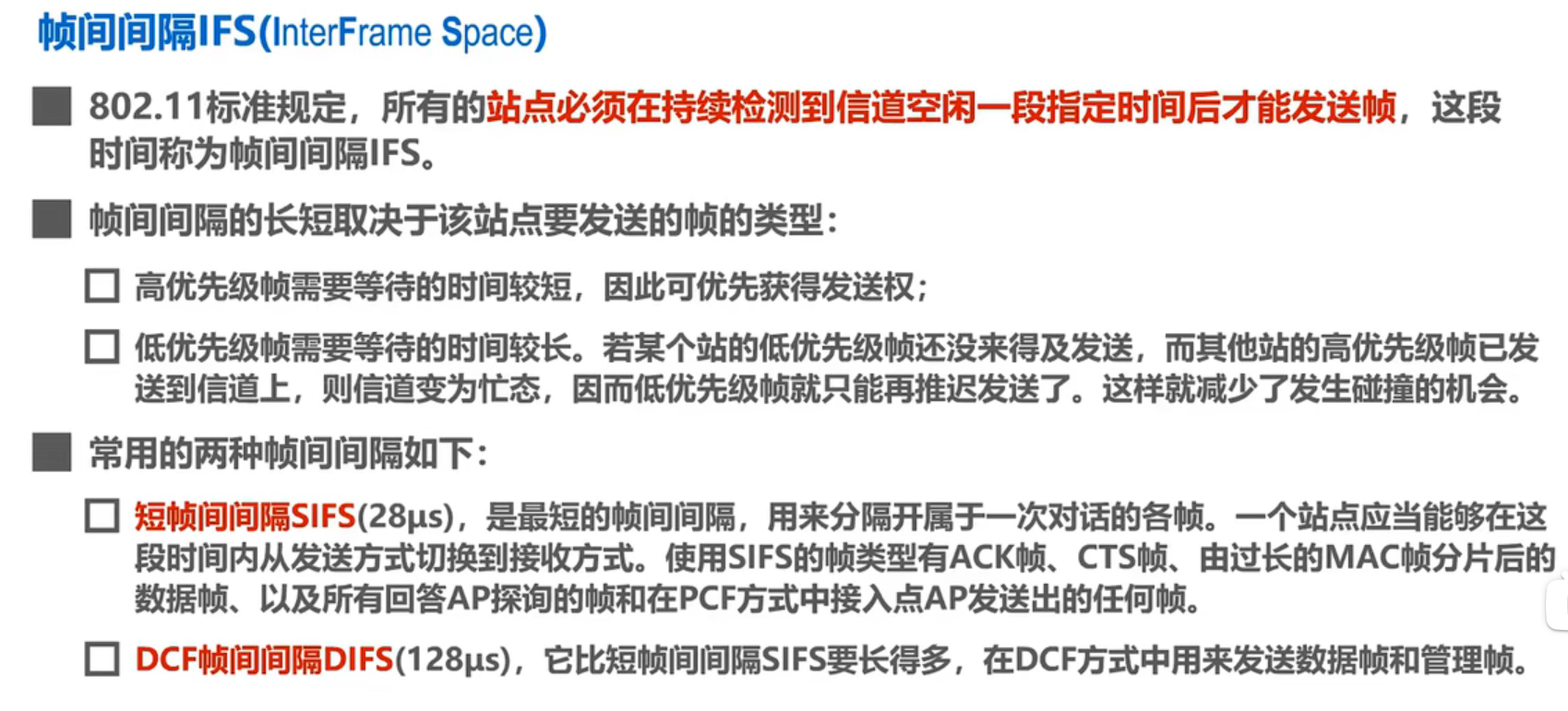 DCF:因为帧有优先级,这个时间用来发送优先级高的帧。