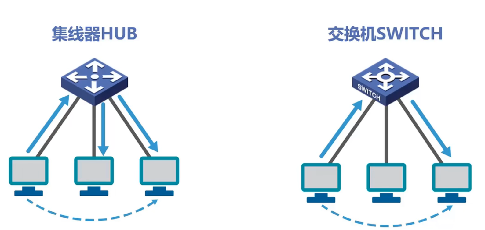 集线器和交换机:集线器是把发送信号发给所有主机,而交换器是发送给一台主机。