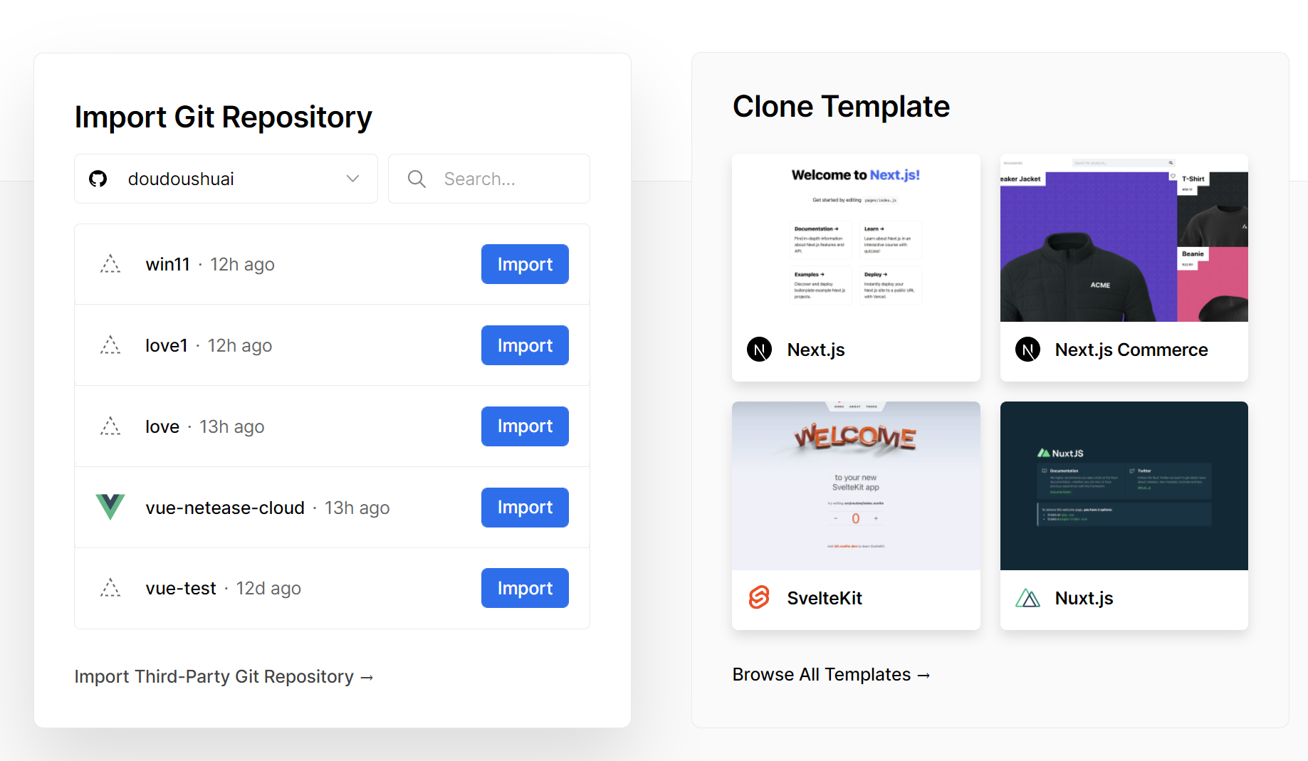 在上面我们需要将自己的github进行绑定以便我们将我们github上的项目进行上线