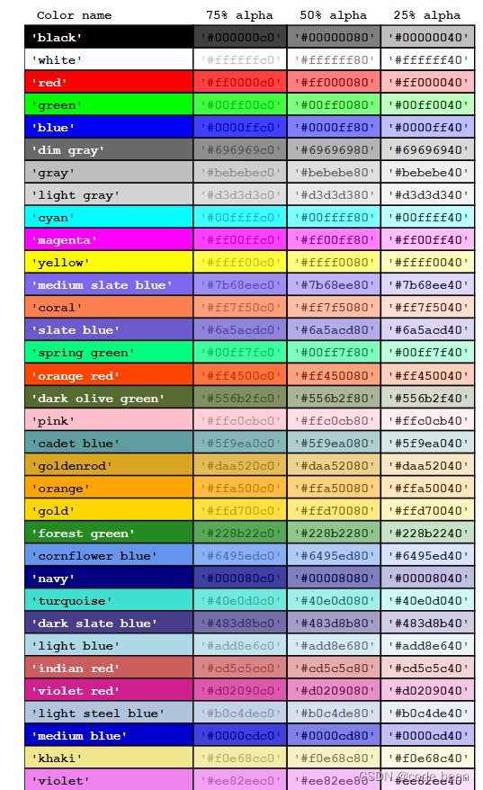 ColorName 可以指定为十六进制 RGB三元组 或 RGBA四元组 以及者 颜色名字。