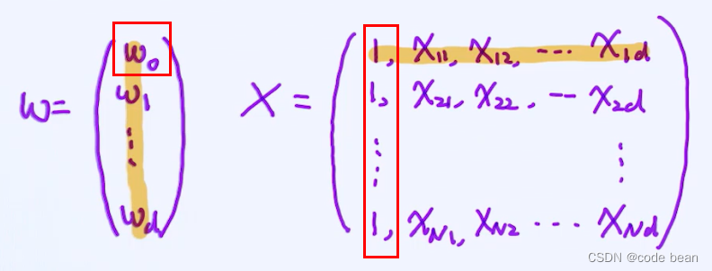 那就是先在X的前面加个1,作为偏置项的基底,(此时X就从n维向量变成了n+1维向量,即变成 [1, x1,x2…] ),然后,让每个分类器去训练自己的偏置项权重,所以每个分类器的权重就也变成了n+1维,即[w0,w1,…],其中,w0就是偏置项的权重,所以1*w0就是本分类器的偏置/截距啦。这样,就让截距b这个看似与斜率W不同的参数,都统一到了一个框架下,使得模型在训练的过程中不断调整参数w0,从而达到调整b的目的。