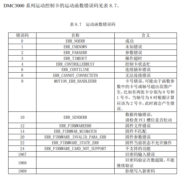 这是一张雷赛卡的报错信息表,我想将其做成一个枚举,然后供异常系统使用: