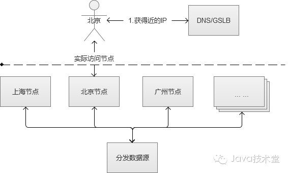 我们常用的CDN(Content Delivery Network,内容分发网络)实现方式,其实就是在同一个域名映射为多IP的基础上更进一步,通过GSLB(Global Server Load Balance,全局负载均衡)按照指定规则映射域名的IP。一般情况下都是按照地理位置,将离用户近的IP返回给用户,减少网络传输中的路由节点之间的跳跃消耗。